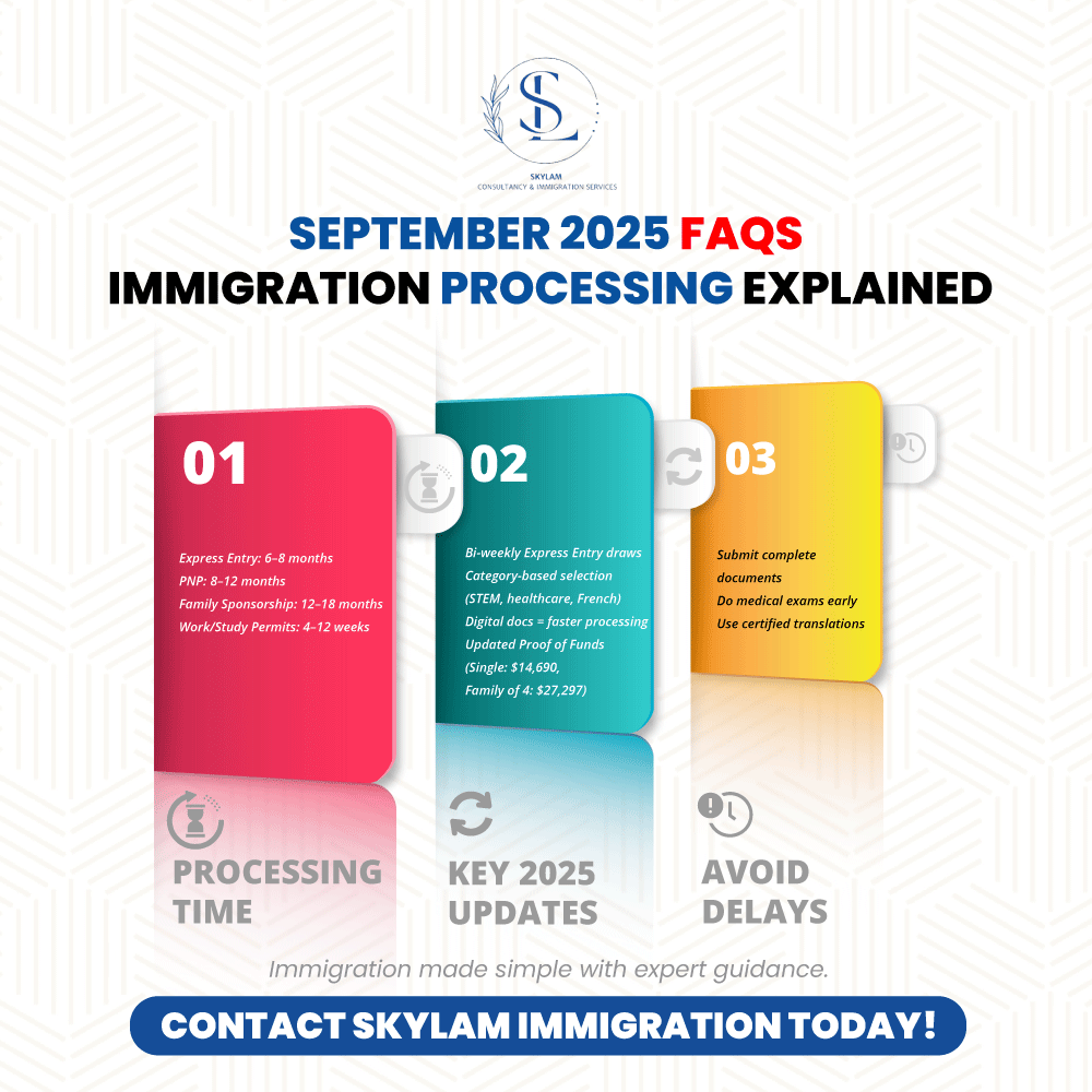 Immigration to Canada remains one of the most sought-after pathways for individuals and families seeking better opportunities worldwide. As we navigate through September 2025, our immigration consultants at Skylam continue to receive numerous questions about processing times, requirements, and recent policy changes. This comprehensive FAQ guide addresses the most common immigration processing questions we’ve encountered […]