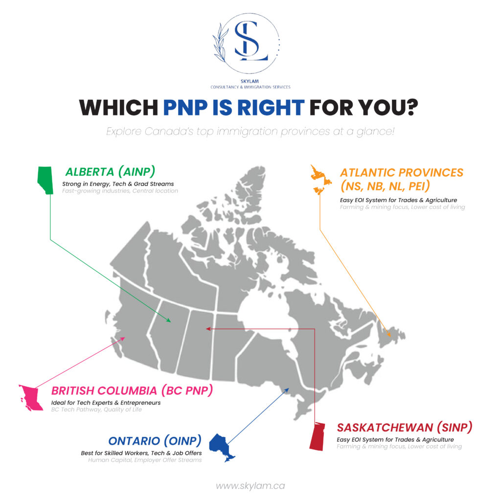 Canada’s Provincial Nominee Program (PNP) has become one of the most sought-after immigration pathways, offering newcomers the opportunity to settle in provinces that align with their skills, experience, and lifestyle preferences. With each province and territory operating its own unique PNP streams, choosing the right program can feel overwhelming. At Skylam Immigration, we help clients […]