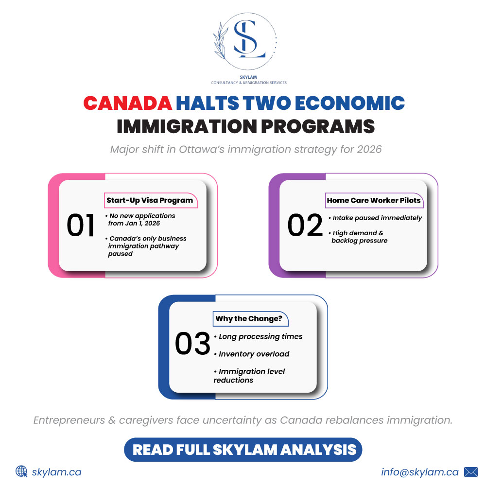 The cancellation of intake for the Start-Up Visa Program and the pause of Home Care Worker pilots marks a defining moment in Canada’s immigration policy.