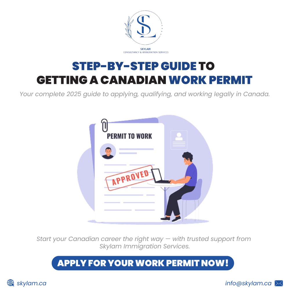 In this complete step-by-step guide, Skylam Immigration Services explains how to apply for a Canadian work permit in 2025 — including eligibility, documentation, and application procedures.